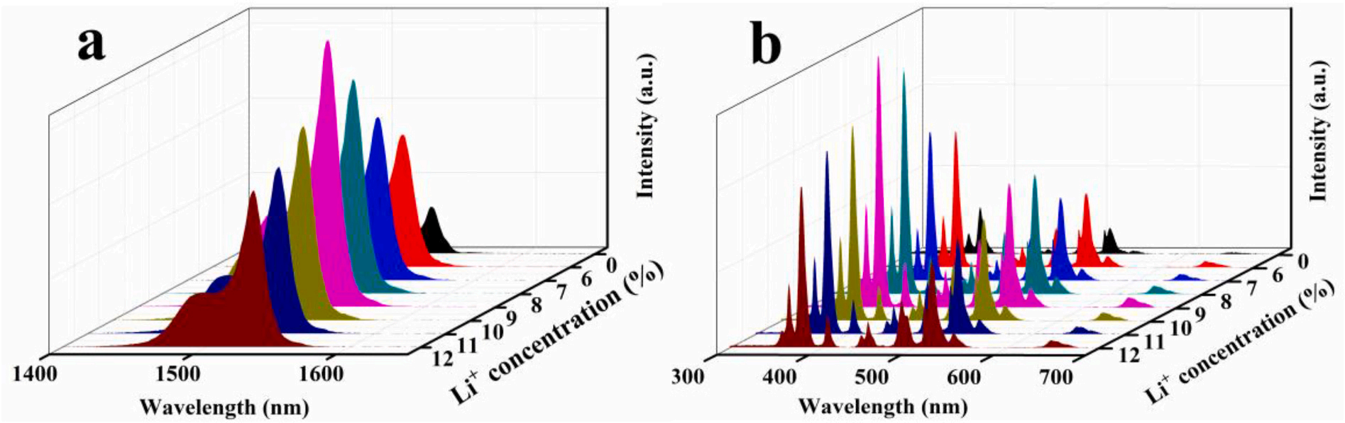 (a)近红外发射光谱(λex=377nm),(b)可见激发光谱(λem=1534nm)