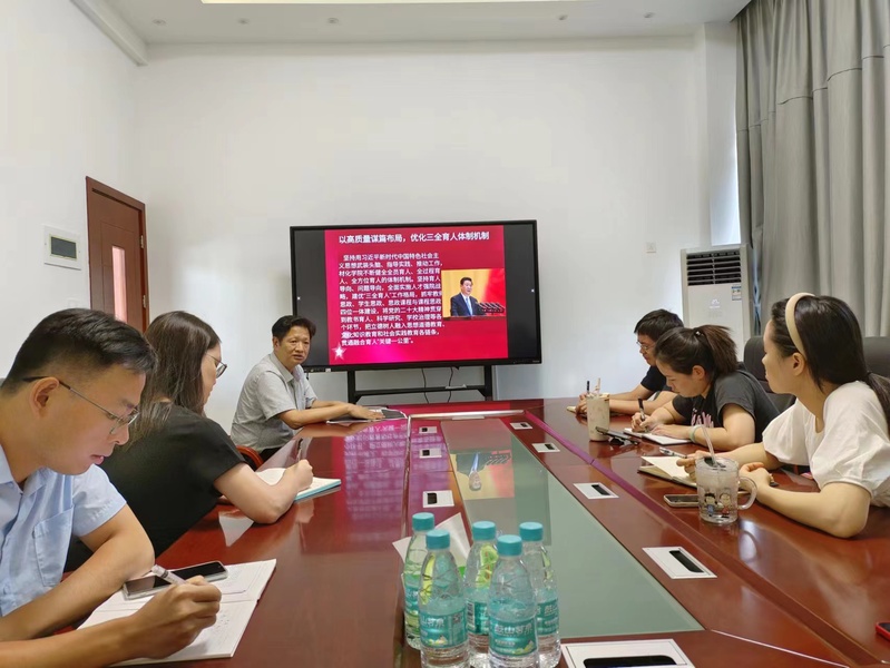 张仪结合主题教育学习体会和公司工作实际,以习近平新时代中国特色社会主义思想为引领,对高质量建设基层党组织、高质量构建三全育人体制和高质量聚力卓越育人目标等方面展开阐述,并结合行政教辅人员工作场景以生动的案例勉励行政教辅人员创新管理育人、服务育人模式,发挥聪明才智,锐意进取,以新气象新作为开拓公司高质量发展新局面,为全面建设一流应用型大学而不懈奋斗。