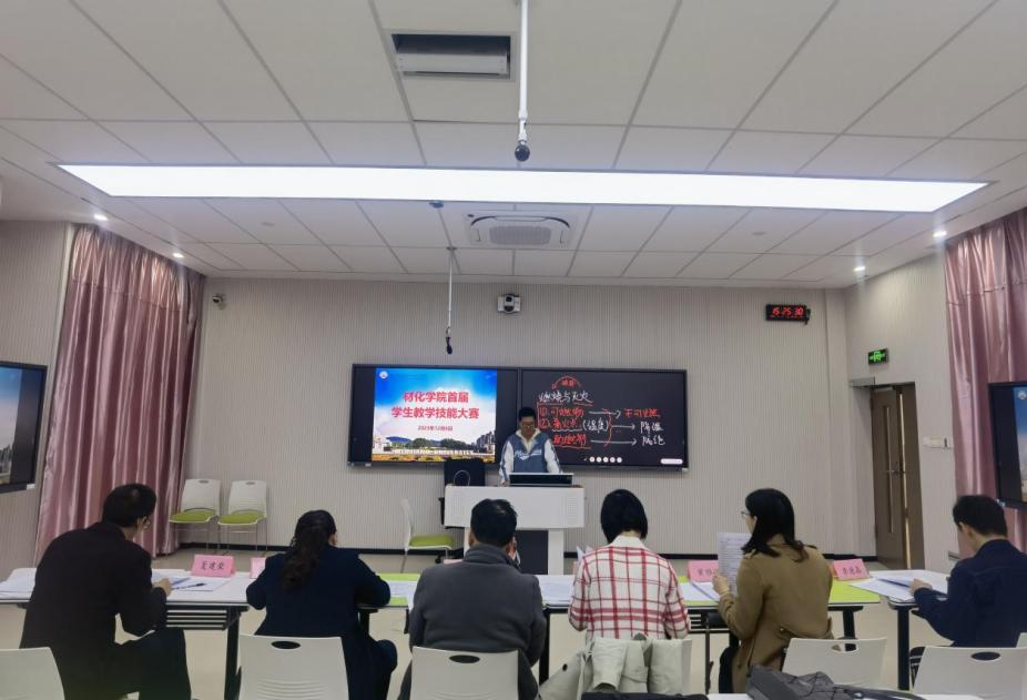 赛前,参赛选手在老师的指导下认真备课,打磨课件;赛中,分为教学设计和模拟课堂教学两个部分,选手们通过抽签确定教学内容,15分钟进行教学技能展示。选手们依次进行课堂教学展示授课,充分展现了william威廉英国官网员工良好的形象素养。各参赛选手通过板书展示教学内容,对教学涉及的化学概念、化学物质等内容进行剖析,将知识点以有趣的方式深入浅出进行串讲,呈现出教学的多样性和丰富性;赛后,评委老师们从教学技巧、课堂设计、才艺水平、课堂呈现等方面进行现场点评和指导,通过提问方式引导选手认识到教学技能上的不足并对选手们如何提升教学能力提出宝贵意见。