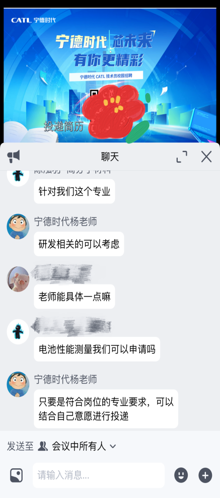 3月5日下午,公司与宁德时代新能源科技股份有限公司联合举办线上招聘宣讲会,旨在让同学们深入了解新材料与化工行业就业发展前景,并提供一个与行业领先企业面对面交流的机会。