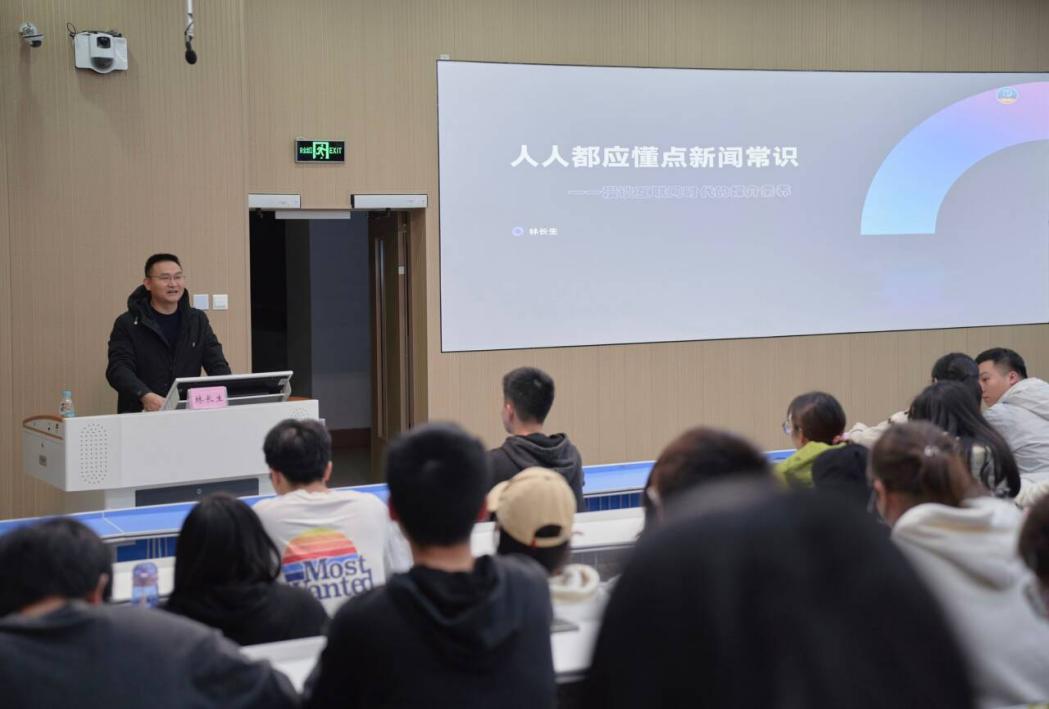 他从近期“贵州村BA、淄博烧烤、尔滨冰雪热、泉州簪花围、长乐游神、天水麻辣烫”等新闻热点导入,从“新闻属性、结构要素、采访技巧、流量法则、媒介真实、新闻伦理、互动交流”七个方面展开讲述。特别强调了新闻写作要体现“真实性、客观性、时效性、简洁性”四大基本原则;标题制作要“短、实、新”,忌“长、空、假”;导语可以采用“一语破的、设置悬念、欲擒故纵、化静为动、拟人修辞、数字对比、速写勾画、特写镜头、古诗名句”八大写法,做到“提炼出重要事实、开门见山水青绿、不落窠臼出新意”。他还为同学们传授了采访技巧“功课准备:采访目的、对象情况;提问技巧:设计问题、引导表达;倾听技巧:直视眼睛、捕捉关键;记录整理:及时完善、整理成稿”,做到“学会讲故事、做有心人”;流量法则要遵循“ABC”(即animal、beauty和child)原则或“3B”(beautiful、beast和baby)原则。最后,还就“媒介真实”“新闻伦理”等问题进行了探讨。讲座之后,林长生老师与同学们开展互动交流和赠书活动,场面热烈。