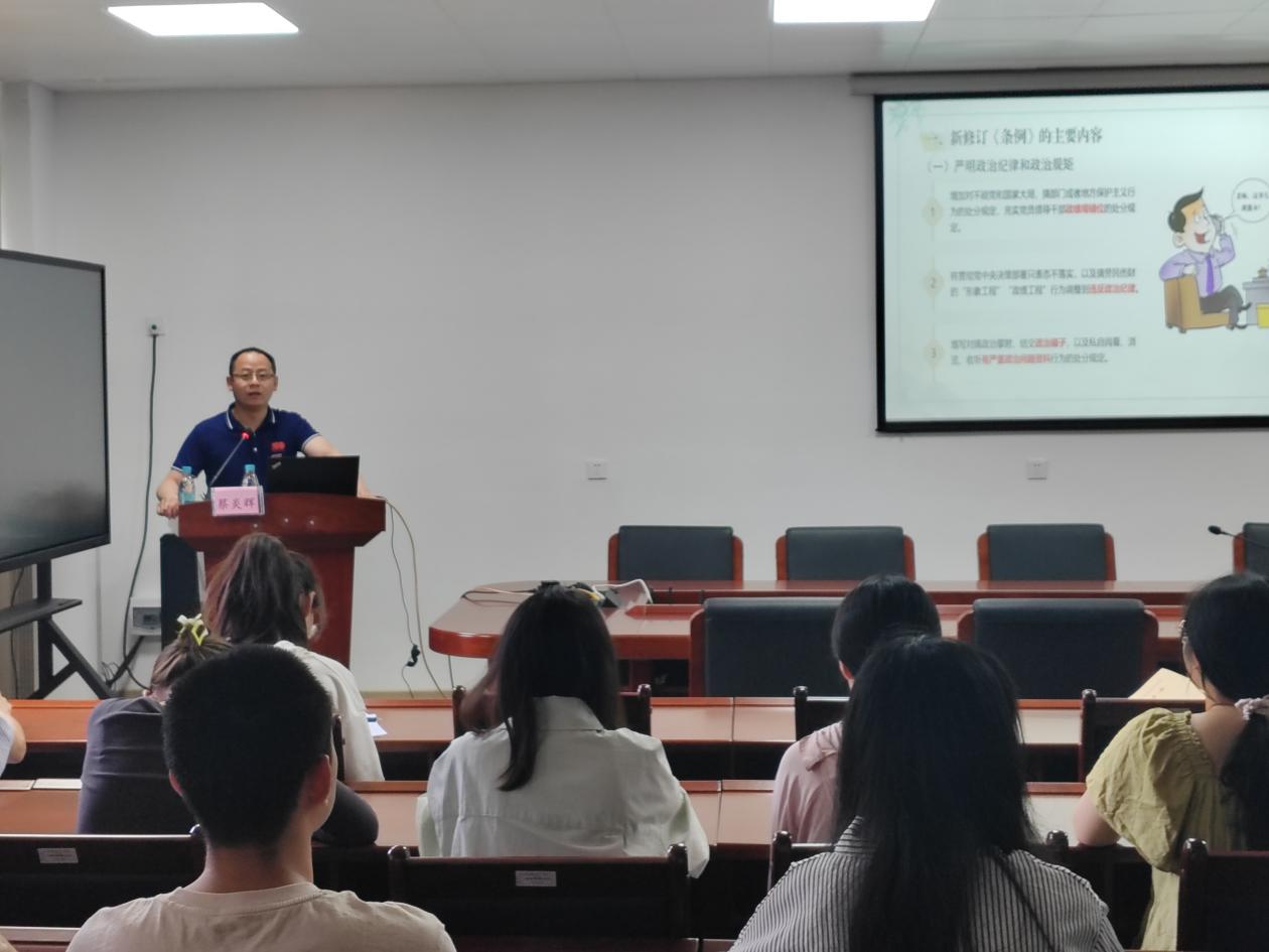 他解读了《条例》修改的重点条文及新增6类“负面清单”,强调全体员工党员要牢固树立“红线”意识和“底线”思维,以优秀党员的标准严格要求自己,要敢于与不正之风和腐败现象作斗争,共同营造“风清气正”的学习生活环境。