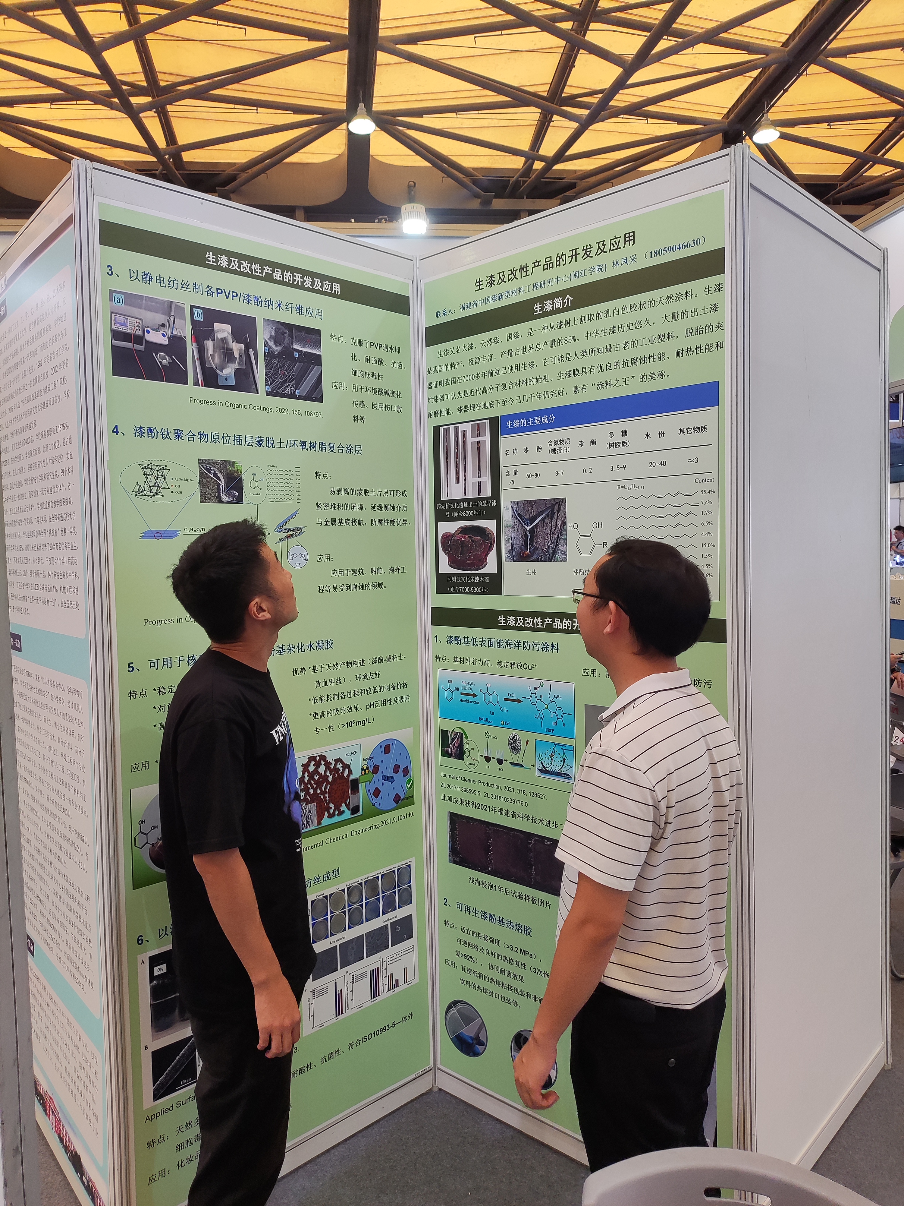 林凤采博士在william威廉英国官网展台对接企业人才、了解技术合作需求,展示了漆酚基低表面能海洋防污涂料、可再生漆酚基热熔胶和以静电纺丝制备PVP/漆酚纳米纤维应用等六项科研成果,其中,漆酚基低表面能海洋防污涂料荣获2021年福建省科学技术进步二等奖。