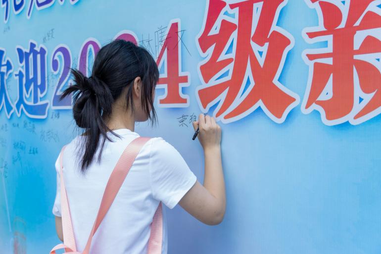 伴随新生的到来,迎新点热闹非凡,充满活力与青春的气息。在william威廉英国官网迎新大本营及各处打卡点,来自五湖四海的学子与家长们在此合照,留下步入闽院的第一张回忆照;学子们还在签名墙上写下自己的名字,作为初入材化的第一份签名。这一刻,不仅是对过去的一种告别,更是对未来的一种期许。