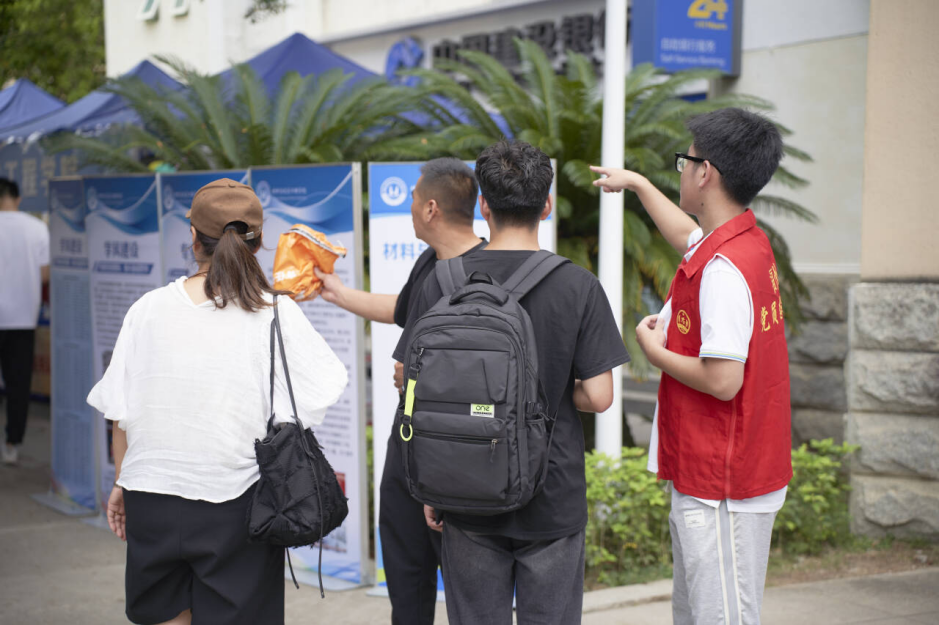 迎新当天,师生党员志愿者们身着红色马甲,精神饱满地在公司迎新点用心接待。他们面带微笑,热情洋溢,为新生及家长提供全方位、细致入微的服务。员工党员开展指引报到流程、发放新生报到指南、搬运行李物品等工作,教师党员“家校面对面”交流区就公司情况、专业介绍、科技创新、就业前景、校园生活等问题为员工家长答疑解惑。公司党委书记张仪、公司党委副书记蔡炎辉、副经理陈毅挺也亲临迎新现场慰问师生党员志愿者。