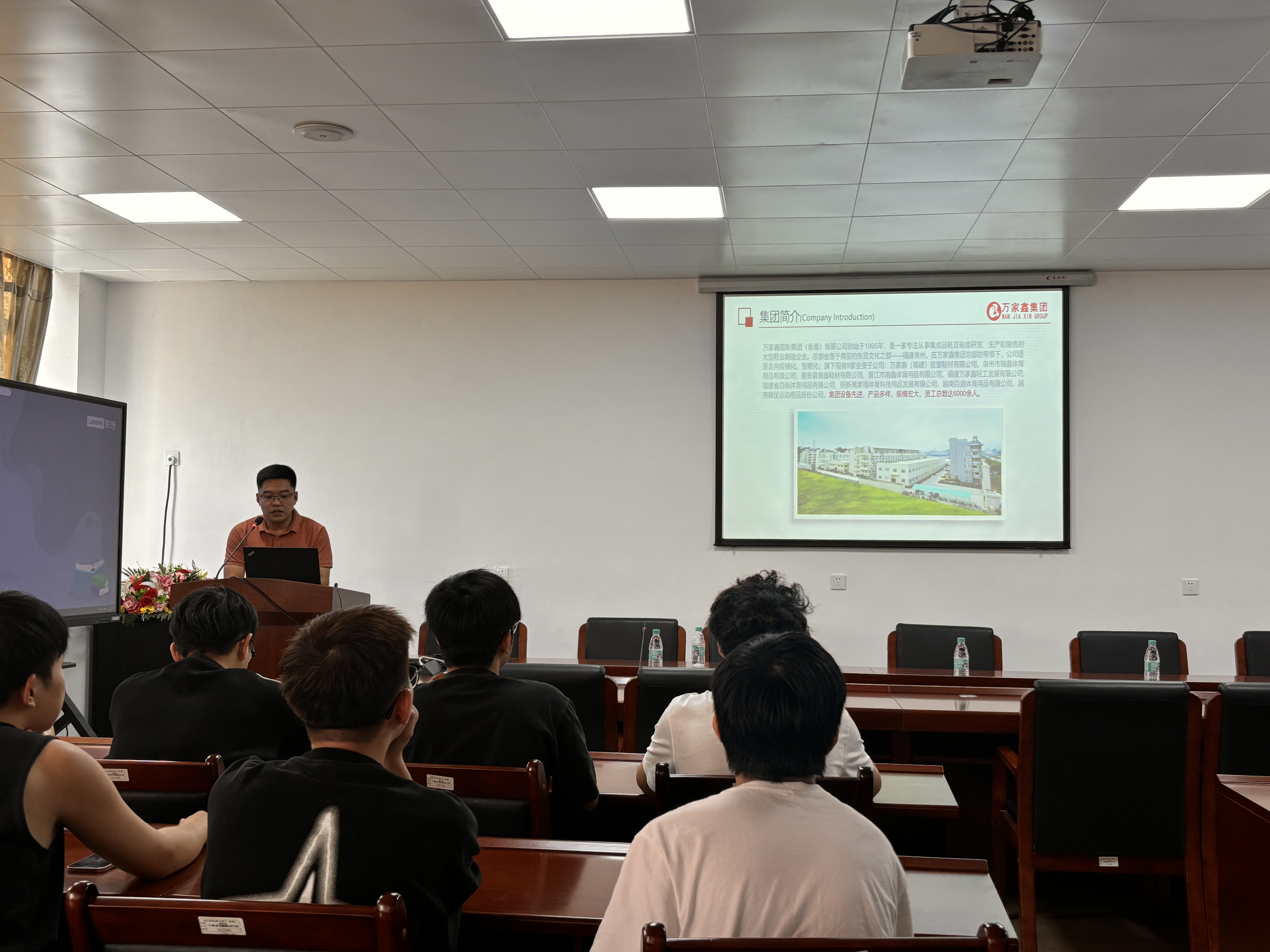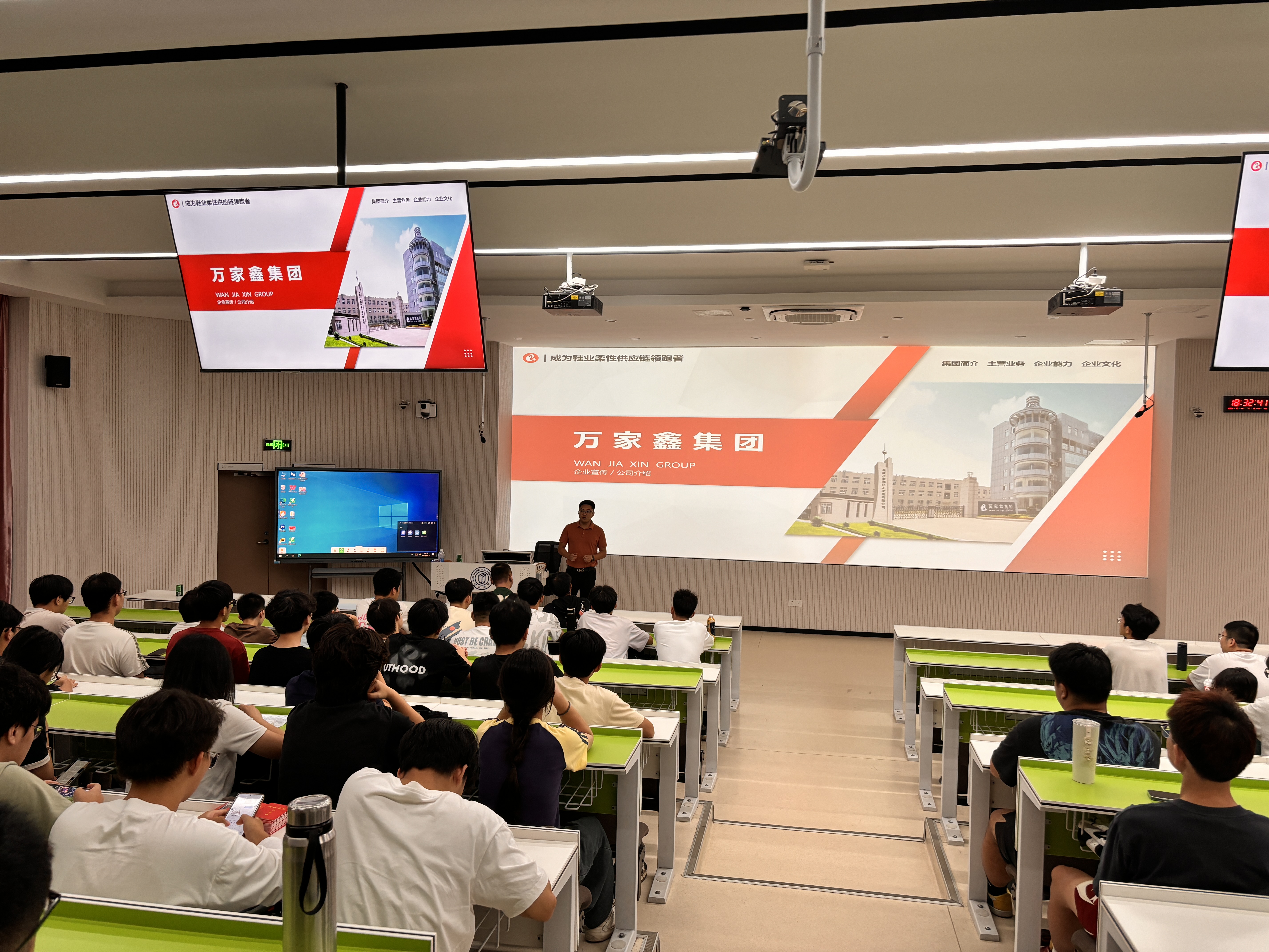 图为万家鑫集团在2024级新生专业导论课上的交流