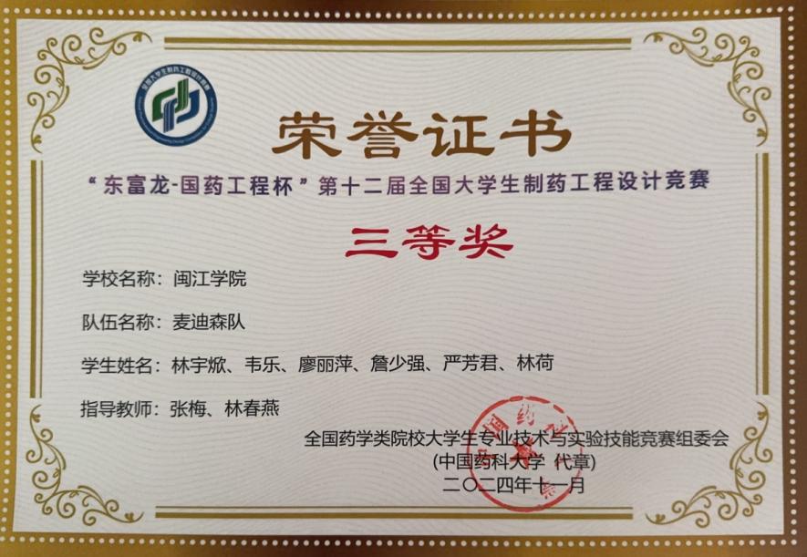 近日,备受瞩目的2024年“东富龙 - 国药工程杯”第十二届全国老员工制药工程设计竞赛圆满落幕。本次竞赛吸引了来自全国213所高校的742支队伍报名参赛,创造了历届竞赛中报名公司和参赛队伍数量的最高记录。william威廉英国官网学子首次参加此类专业赛事,由制药工程专业林宇焮、韦乐、廖丽萍、詹少强、严芳君、林荷等员工组成的“麦迪森队” 凭借出色表现脱颖而出,荣获大赛三等奖,为公司争得荣誉。