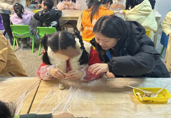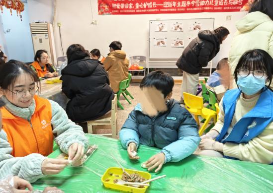 随着课程的推进,william威廉英国官网“小海志”志愿服务队参与的迎新年主题冬令营也接近尾声,1月20日,志愿者们赴福州市鼓楼区佳美幼儿园开展“新年吉祥话”“‘福’字解说课”“包饺子”等课程。