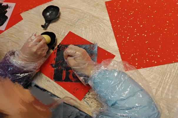第二节课,教师带领小朋友认识“福”字。通过猜“福”字的小游戏,让小朋友们的注意力集中到“福”字上。为激发小朋友的兴趣,教师请小朋友读俚语,说一说生活中有哪些东西带着“福”字。志愿者们从旁协助,让小朋友们大胆发言,顺利回答问题。在之后的写“福”字环节,小朋友用黑色、金色的笔,在红纸上写“福”字,表达自己对福字的理解,传达“福”字所蕴含的美好寓意。
