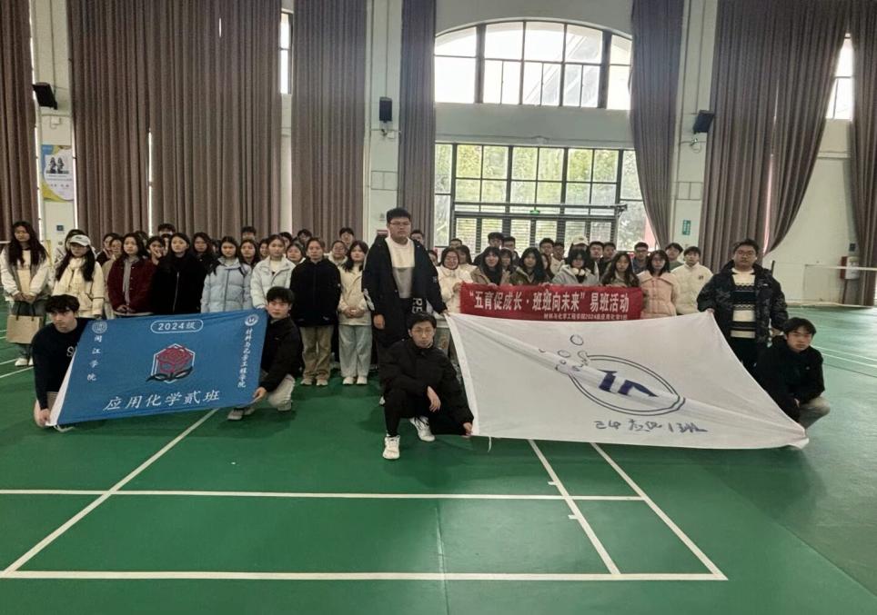 为丰富校园文化生活,增强班级凝聚力,促进班级交流,弘扬体育竞技精神,24级应用化学1班与应用化学2班在校体育馆联合举办的"羽动青春"羽毛球赛。
