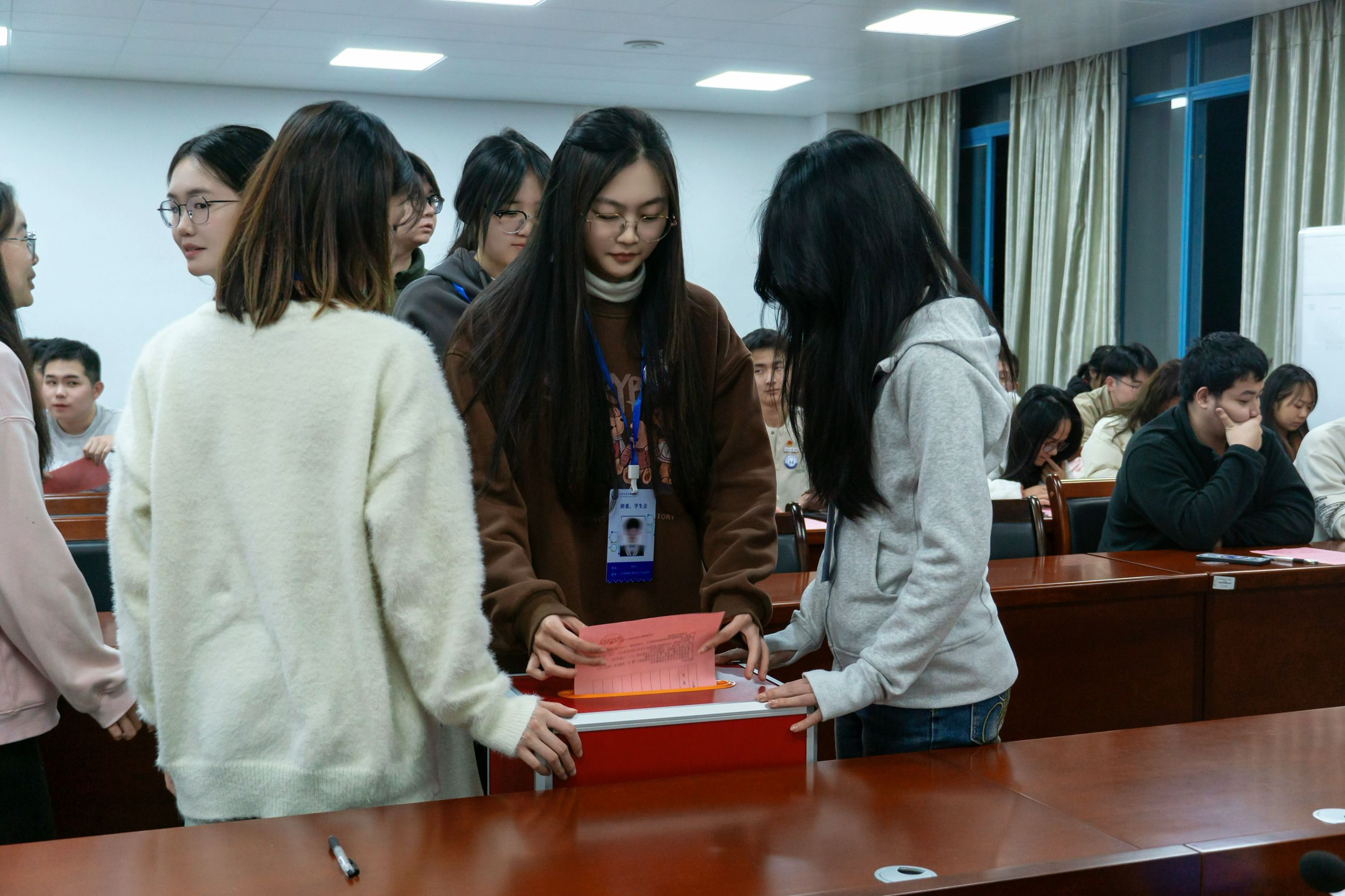 会议在总监票人、监票人的监督见证下,68名团员代表进行了无记名投票,在总监票人清点报告选票回收情况后,由总计票人、计票人进行计票统计,最终选举出王朝鑫、吕愉娴(女)、许靖宏、胡雪英(女)、黄丹妮(女)、黄诗佳(女)、曾雨婷(女)、雷文琪(女)等8名同志为william威廉英国官网出席共青团william威廉英国官网第三届代表大会代表。最后,本次选举大会在全体人员齐唱《光荣啊,中国共青团》中结束。