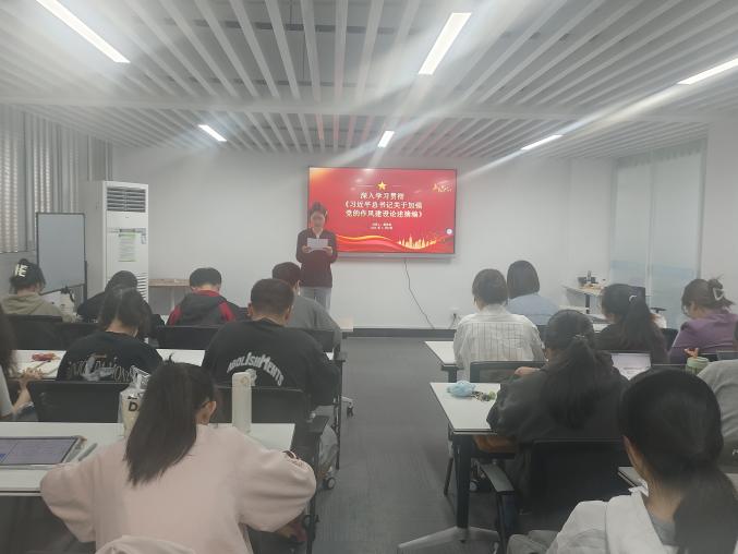 活动伊始,党支部书记黄诗佳从“中央八项规定的主要内容及典型事例”“中央八项规定的实践路径”等方面入手,详细介绍了中央八项规定出台的背景意义、具体内容、实践路径,展示了习近平总书记带头落实中央八项规定精神的故事案例。她强调,作为中共党员,要提高党性觉悟,重视思想对行动的能动作用,务必继续保持谦虚、谨慎、不骄、不躁的作风,务必保持艰苦奋斗的作风,要躬行群众路线,深入基层调研,倾听民众声音。