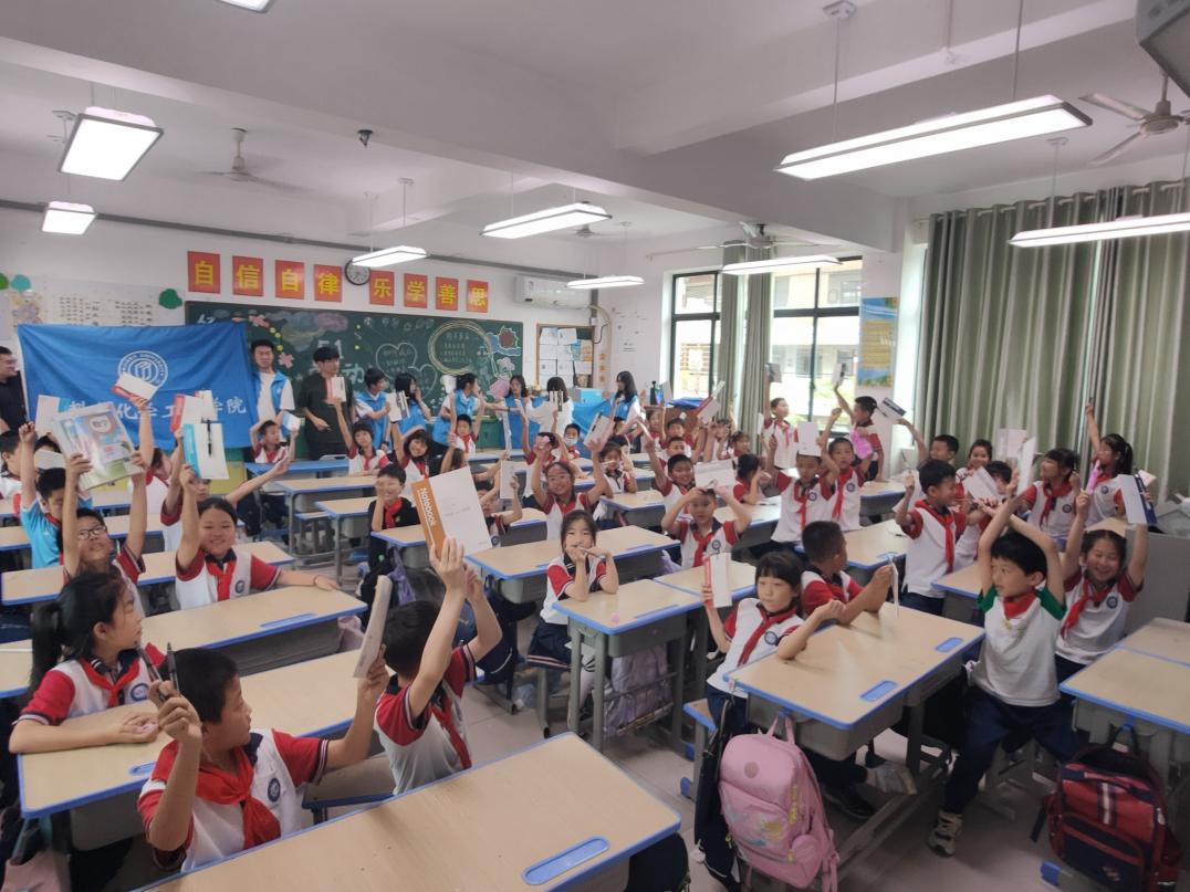 活动结束时,小朋友们骄傲地展示着自己的实验成果,与志愿者们合影留念。每位参与活动的孩子都获赠了笔记本和铅笔,灿烂的笑容映照着他们对科学探索的浓厚兴趣。