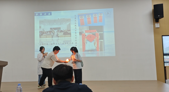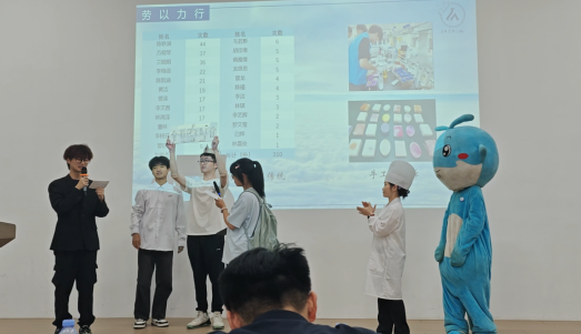 决赛现场,24应化1班从一名刚入学的小化同学的视角出发进行汇报,借助“德智体美劳”五位同学的帮助解决了入学初期的种种疑问。其中,“德同学”介绍了易班轻应用平台建设和红色精神传承的内容;“智同学”展示了具有专业特色的“火焰掌”实验;“体同学”则介绍了结合专业特色的撕名牌、羽毛球等体育竞技活动;“美同学”带来了班级同学制作的DIY非遗手工作品与民族服饰海报板;而“劳同学”则分享了多姿多彩的劳动实践活动。随后,班长还展示了班服、班徽、班歌等丰富的班级文化元素,整个汇报在青春活力的舞蹈表演和“实践砥砺匠心,五育催化人生”的响亮口号中落下帷幕。整场比赛不仅彰显了班级同学的用心与热情,更体现了班级强大的凝聚力和独特的精神风貌。
