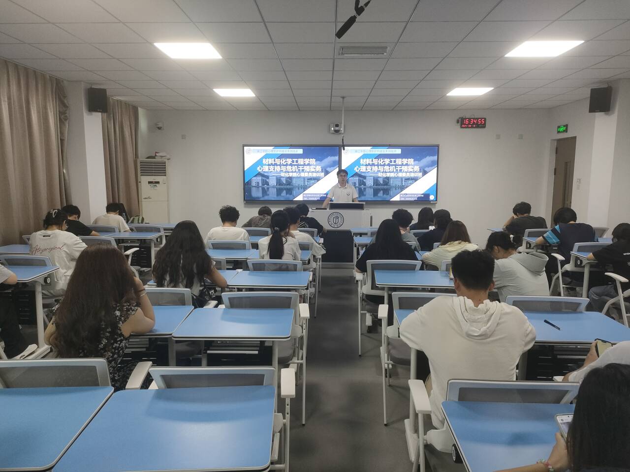 培训围绕“心理问题的识别与评估”“心理危机干预与转介”“心理咨询与治疗资源”“期末考试周心理防线筑牢”四大核心板块展开。培训会结合专业理论与典型案例,系统讲解了心理健康状态的分级标准,并特别强调了日常观察的“行为、情绪、学业”三维度评估工具。针对心理危机干预实务,培训详细解读了言语表达自杀相关倾向、情绪突然异常、行为明显改变等三大危机识别信号。针对即将到来的期末考试,培训聚焦考试焦虑的情绪、生理、行为三层面典型表现,重点传授呼吸放松法与肌肉放松法等实用技巧。