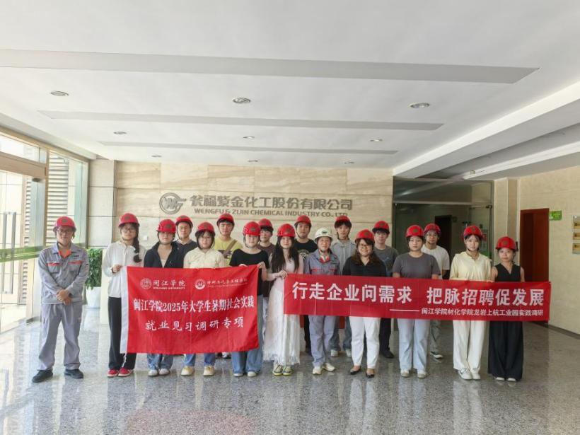 为深化产教融合,探索化工行业发展趋势与人才需求,7月1日至3日,公司赴龙岩上杭工业园开展“行走的招聘会”暑期社会实践活动,先后走访了天甫电子材料有限公司、瓮福紫金化工股份有限公司、常青新能源科技有限公司、新安科技有限责任公司、时代思康新材料有限公司五家重点化工企业。通过实地考察、技术交流、岗位体验等形式,深入了解了化工产业的技术创新、企业发展及人才需求,为高校人才培养与就业指导提供了重要参考。