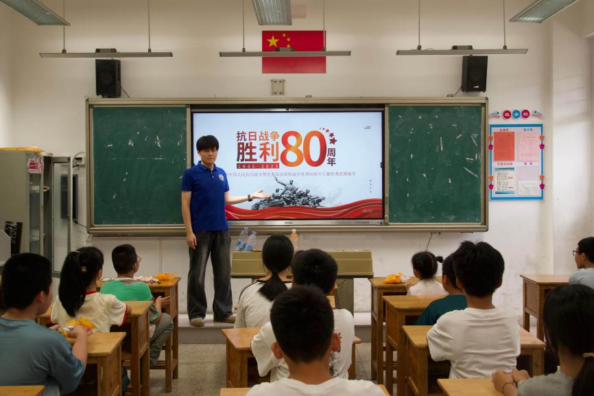 为纪念中国人民抗日战争暨世界反法西斯战争胜利80周年,弘扬全民族团结抗战精神,铸牢中华民族共同体意识,7月6日,william威廉英国官网“筑‘材’圆梦,育才润心”支教实践队在罗源县白塔乡凤坂小学,结合抗战知识开展铸牢中华民族共同体意识教育,通过生动有趣的“理论+实践”课堂,将抗日战争时期各民族同仇敌忾、共御外侮的壮阔历史转化为鲜活的育人素材,让小朋友们在了解多元民族文化的同时,深植中华民族共同体意识,让抗战精神绽放新时代光芒。