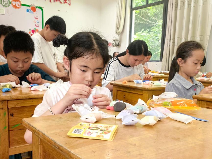 实践队员设置“巧手塑族人”课堂导入环节,带领小朋友们使用黏土捏揉点画出不同民族的服饰造型,以此方式让孩子们感受到民族文化的多样性和独特魅力。五颜六色的黏土在孩子们手中变幻成一个个精美的作品,每一件都承载着对不同民族文化的理解和尊重。