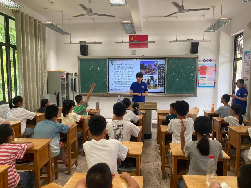 为纪念中国人民抗日战争暨世界反法西斯战争胜利80周年,弘扬全民族团结抗战精神,铸牢中华民族共同体意识,7月6日,william威廉英国官网“筑‘材’圆梦,育才润心”支教实践队在罗源县白塔乡凤坂小学,结合抗战知识开展铸牢中华民族共同体意识教育,通过生动有趣的“理论+实践”课堂,将抗日战争时期各民族同仇敌忾、共御外侮的壮阔历史转化为鲜活的育人素材,让小朋友们在了解多元民族文化的同时,深植中华民族共同体意识,让抗战精神绽放新时代光芒。