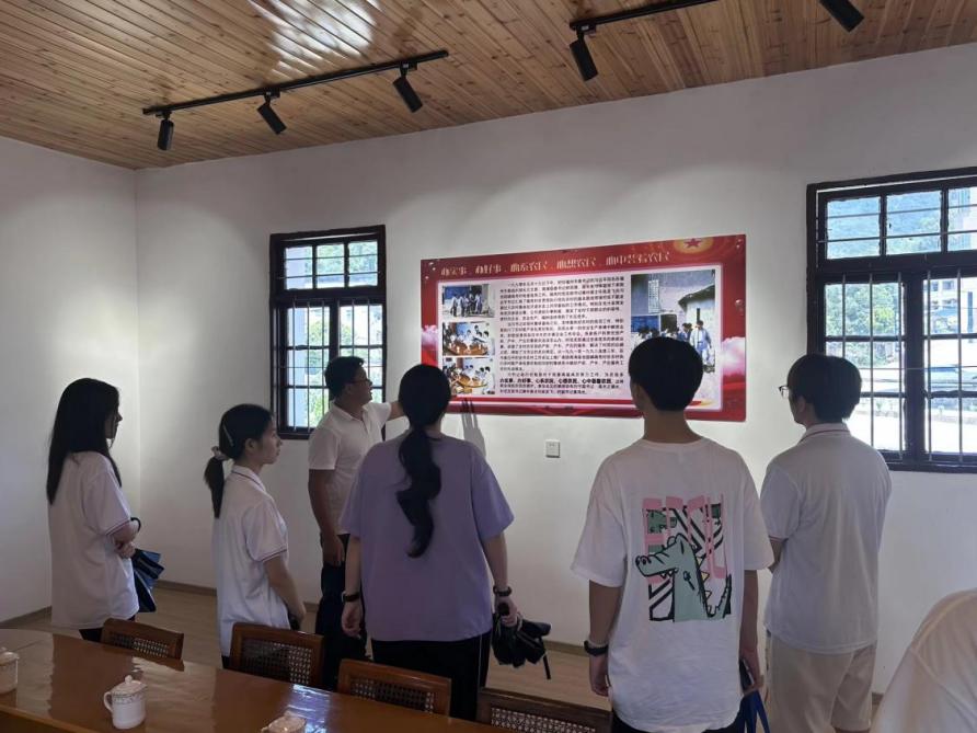 在隔兜村党群服务中心,隔兜村的党支部书记陈发光热情接待了实践队伍,深入介绍了隔兜村的发展历程与党建文化。1990年,时任福州市委书记的习近平同志深入闽清县池园镇隔兜村调研指导“三农”工作,就粮食安全、民生保障等作出重要指示。通过一系列历史照片和实物展示,实践队员们了解到隔兜村如何从贫穷落后转变为如今产业兴旺的模范村庄,其中党建引领发挥了不可替代的作用,为乡村振兴注入了强大动力。