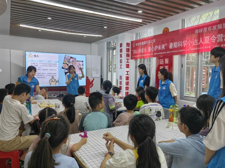 当紫甘蓝的汁液在酸碱溶液中变幻出绚丽色彩,当 “火焰掌” 上跃动的火苗引来阵阵惊呼,当孩子们拼出完整的中国地图时眼中闪烁的光芒……这个夏天,鼓楼区五凤街道白龙社区党群服务中心成了科学的乐园。 7月2日至8日,由william威廉英国官网“小海志”暑期社会实践队、白龙社区与福州市小桔灯社会工作服务中心联合举办的 “润心伴成长,童心护未来” 科学小达人夏令,以“爱国情铸魂、科学趣启蒙、安全弦筑防”为核心理念,为二十余名孩子打造了一段融合思想启迪、知识探索与生命守护的精彩旅程。实践队员创新运用沉浸式体验、趣味实验与实用知识相结合的方式,生动展现了新时代青年运用专业知识服务社会的时代担当。