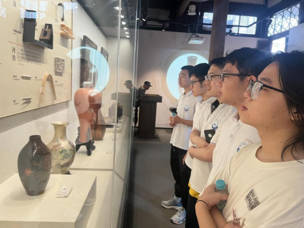 随后,实践队走进福建省沈绍安漆艺博物馆,沿着历史长河探寻脱胎漆器的文化根脉。从早期古朴的漆器雏形到明清时期工艺成熟的精美藏品,再到当代匠人的创新之作,一件件展品串联起技艺演变轨迹。在了解沈绍安从衙门门板夹纻工艺中获启发、改良开创脱胎漆器技艺的历史时,同学们结合化学知识展开讨论:古人如何在没有现代检测手段的情况下,精准把握生漆与瓦灰的配比,实现最佳粘合效果?这种跨越时空的工艺智慧,让大家深刻体会到 “千锤百炼” 背后不仅是匠心坚守,更藏着古人对材料特性的精准把控。