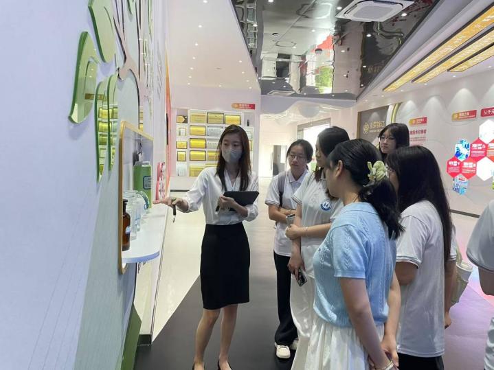 实践队走进永荣锦江企业文化展厅,在企业经理的讲解下,通过图文展板、实物展示及多媒体互动等形式,深入学习企业的创业历程、发展成果与未来蓝图,全面了解其以“绿色智造、科技引领”为核心的企业文化与核心价值观。随后,企业经理围绕“从一滴石油到一根纤维”的生产工艺流程,为同学们系统讲解了尼龙产业链的关键技术环节,包括苯—己内酰胺—尼龙切片—尼龙纤维的全流程转化过程。这一理论讲解为后续深入生产一线调研打下了坚实基础。