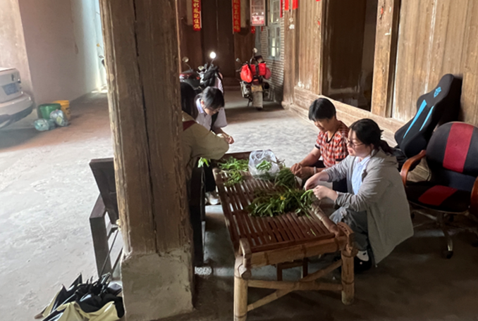 7月3日,实践队首先来到了桥水人家社区,与社区的长者们亲切交谈,一句句家常的问候,一次次耐心的倾听,让队员们真切感受到了身边环境的变化与发展。下午,实践队伍前往闽侯县荆溪镇,继续开展社区服务活动。队员们围坐在石桌旁,与镇里的老人们面对面交流,传递来自青年学子的温暖与关怀。这种近距离接触使书本上的“民生”二字变得鲜活而具体,增强了队员们的社会责任感和服务意识。