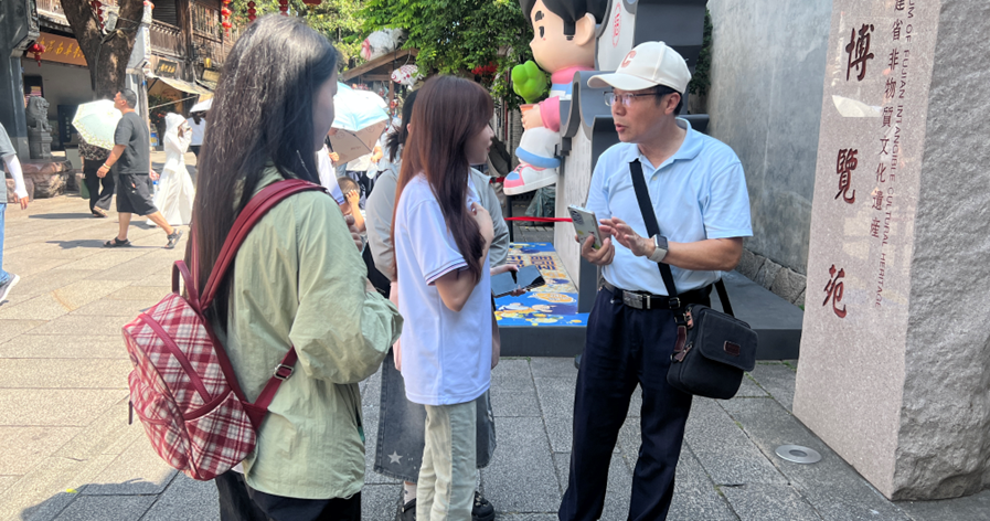 活动最后一天,团队来到三坊七巷历史文化街区,沉浸式感受着古老坊巷的独特魅力。队员们随机采访到一位游客,了解到他对福州城市街区整洁有序的印象以及被这里深厚的历史文化底蕴吸引的原因。这次成功的访谈为团队的民生观察报告增添了宝贵的素材,提供了独特的游客视角。
