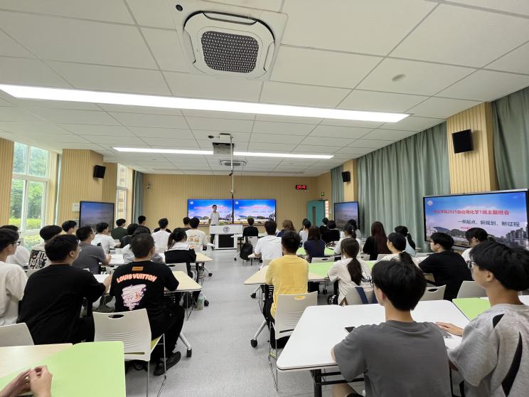 9月9日下午,2025级应用化学1班班主任谢锋炎老师与两位员工班导共同组织新生,召开以“新起点、新规划、新征程”为主题的新生班会。