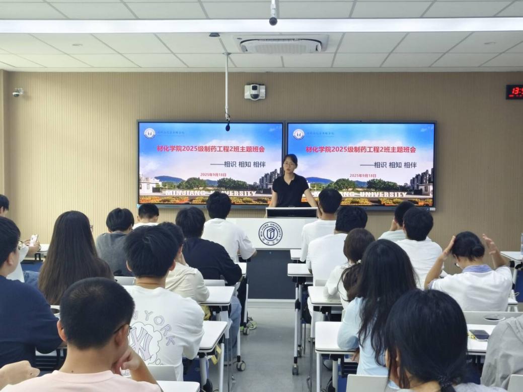 9月18日,2025 级制药工程2班班主任练殊老师在教学楼1A202教室开展新生入学交流分享暨破冰班会,以“轻松互动+经验传递”的形式,帮助新生快速适应老员工活。