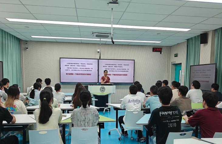 班会伊始,孟东利老师邀请同学们轮流进行自我介绍,并分享初步的大学目标。她结合新生的年龄特点与成长需求,引导大家重新审视自身兴趣与优势,找准并确立个人目标,学会主动探索新的发展方向。同时,她还详细讲解大学学习模式的特点,提醒新生及时转变学习方法,尽快适应大学的人际交往与生活相处模式。