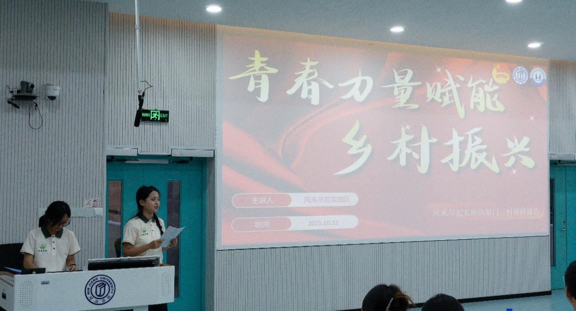 随后,15支实践队伍依次登台,通过PPT汇报、音频播放、现场模拟等丰富形式,全方位展示实践成果。有的队伍深入乡村与社区,结合专业优势设计特色课程,开展公益性暖风支教,为孩子们播撒知识种子;有的队伍走访多家行业相关企业,深度调研新时代背景下企业发展现状与人才需求方向,搭建校企沟通桥梁;有的队伍运用专业知识奔赴乡村,开展水质检测等技术服务,助力地方产业高质量发展;还有的队伍深挖中国优秀传统文化内涵、寻访红色足迹,通过调研宣讲的形式,广泛传播党的二十大、二十届三中精神与创新理论体系,让红色基因与文化自信在实践中传承。