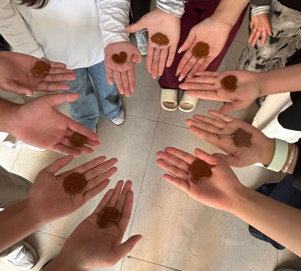 过程中,大家不时交流技巧。遇到气泡、凝固不均等问题时,主动向负责人请教,在试错与调整中制作出令自己心仪的挂件。当焦糖色的松香琥珀从模具中取出,同学们兴奋地分享着自己的作品与感悟。