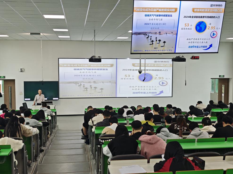 课上,吴灏副书记围绕“变乱交织的国际形势”“全球治理的国际共识”和“时代之问的中国答卷”三大模块展开系统讲解。他从巴以冲突、乌克兰危机等现实案例切入,深刻剖析了当前国际形势的复杂性与不确定性,同时指出和平、发展、合作、共赢的时代潮流不可逆转;进而强调联合国等多边机制在应对全球挑战中的关键作用,阐明践行真正多边主义是完善全球治理的必由之路。在此基础上,他重点阐释了中国在推动构建人类命运共同体中的积极作为,通过“一带一路”合作、金砖国家机制及维和行动等生动实例,系统介绍了中国在全球治理中提出的倡议、主张与具体实践,展现了中国作为负责任大国的担当与智慧。